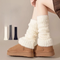 thermal slouch socks/boot cuffs in neutral colors: black, charcoal gray, and cream/off-white. Made from a soft, thick velvet/flannel material for ultimate warmth and comfort in winter.