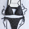 Elegant black Gucci bikini with a subtle GG pattern in lurex. A sophisticated choice for swimwear.