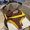 Stylish Fendi bikini with the iconic FF logo pattern and yellow straps. A fashionable choice for swimwear.