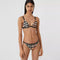 Burberry bikini set featuring the classic beige check pattern with triangle top and tie-side bottoms.