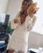 Drift into dreamlike style with this enchanting white mini dress. Crafted from delicate and intricate lace, it features a flattering deep V-neckline and romantic long, flowing sleeves. Perfect for embracing sunny days with an air of effortless grace.