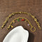A charming keychain featuring two sparkling red cherries with gold-tone stems, leaves. A fun and eye-catching accessory.