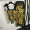 Stylish black Versace one-piece swimsuit with a cutout design and the iconic Medusa emblem on the gold-tone belt.