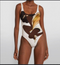 One-shoulder monogram swimsuit with cutout detail, available in multiple colors.