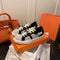 sleek and classic sneakers from Prada are crafted from smooth, white brushed leather. They feature a low-top silhouette with lace-up closure and the iconic Prada triangle logo on the side. The minimalist design offers a versatile style that can be dressed up or down.