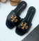 Stylish black leather slides from Tory Burch featuring the iconic gold-tone logo. Comfortable and chic, perfect for adding a touch of luxury to your casual look.