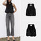 Stylish black knit top with a mock neck and signature gold Medusa accents. Chic and fitted.