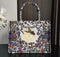 This sculptured compact tote bag featuring waves, folds, and curves can be used in two ways. Basket-style, with its sides open and straps on the outside, or As a flower-like closed bag, with its sides tucked in and its straps crossed on the inside.