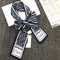 Elegant black Chanel square scarf with a white border and the iconic Chanel logo. A luxurious and versatile accessory to elevate any look.